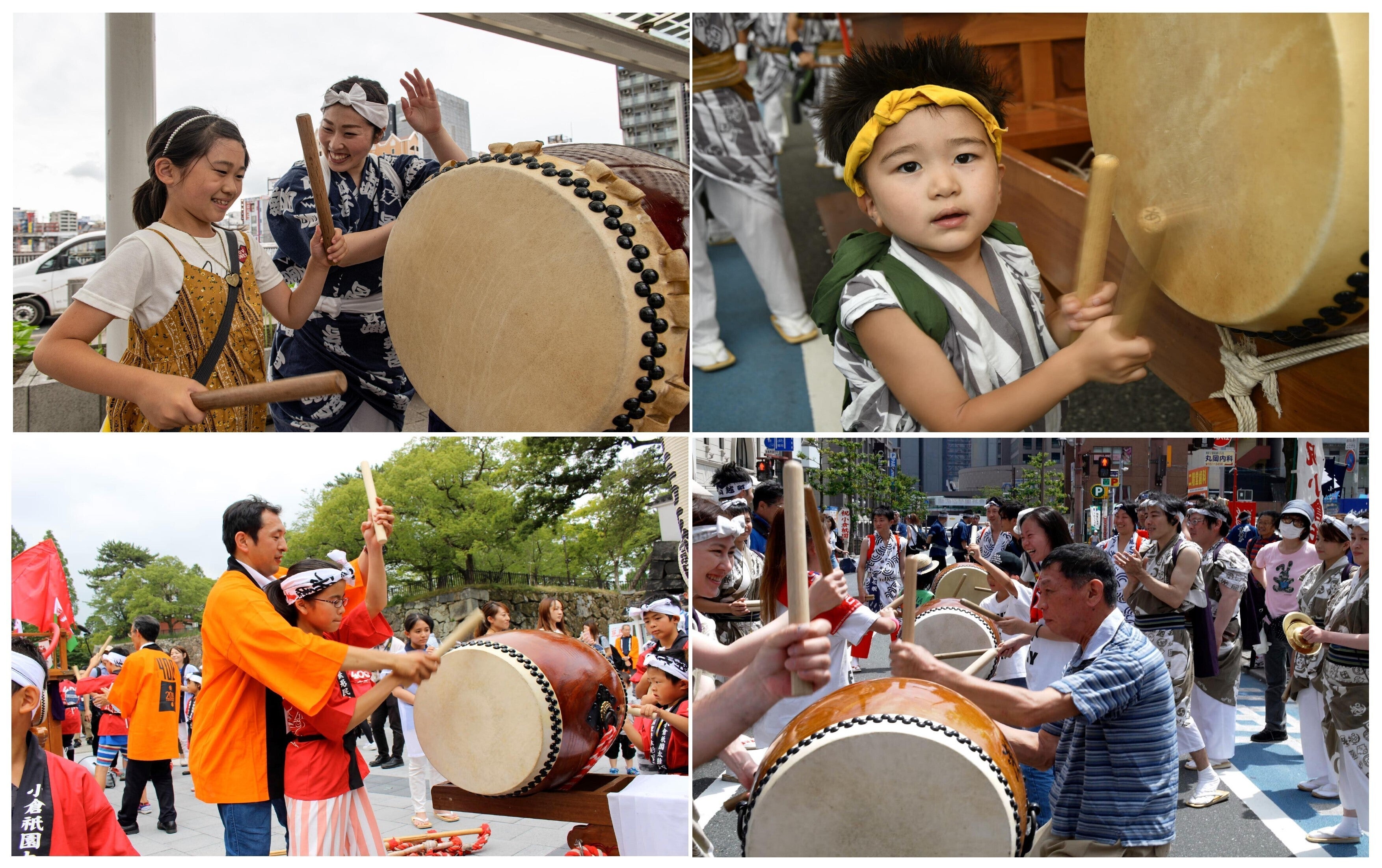 小倉祇園太鼓は老若男女問わず、誰もが主役を演じ、世代を超えて参加できるお祭りです。