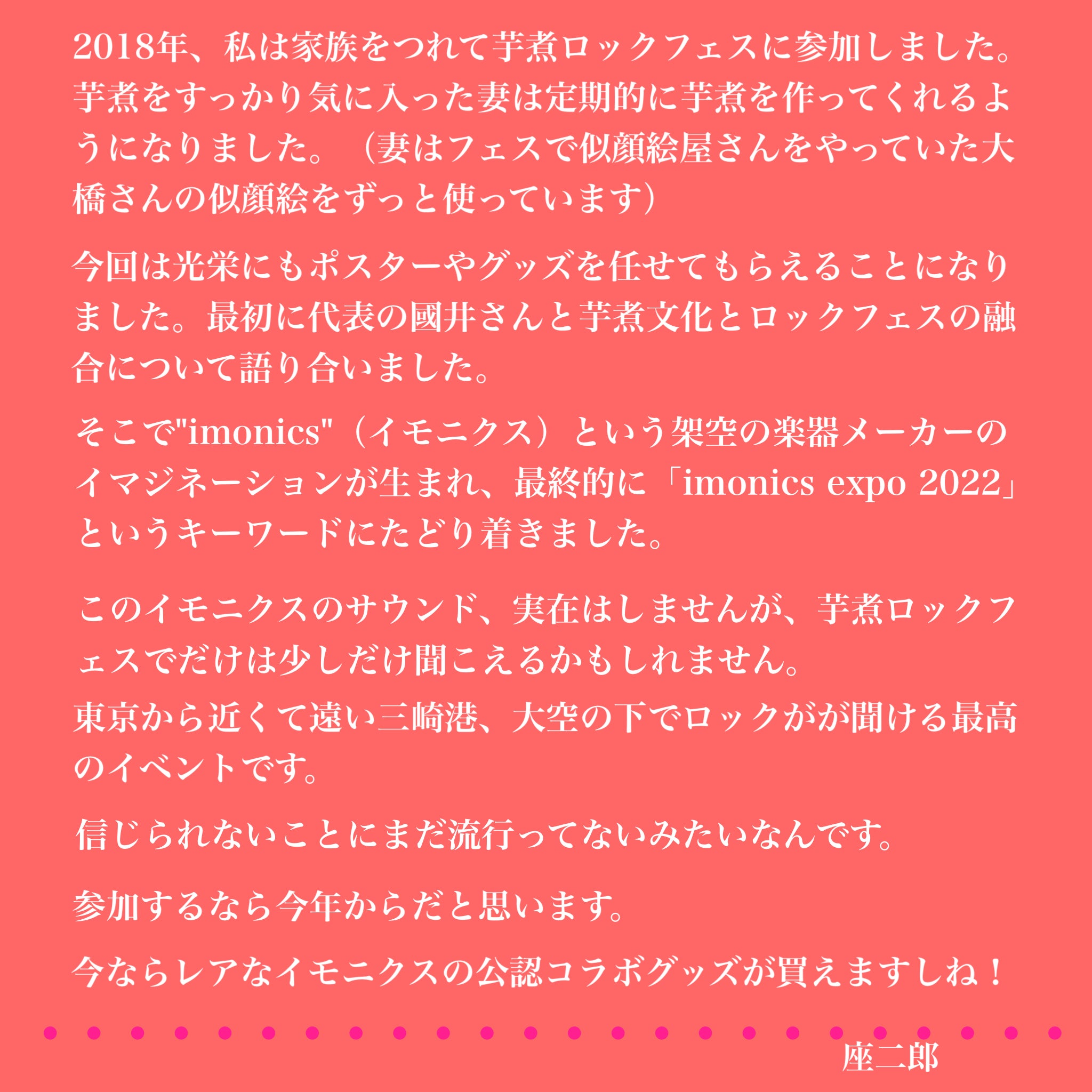 座二郎さんからメッセージ