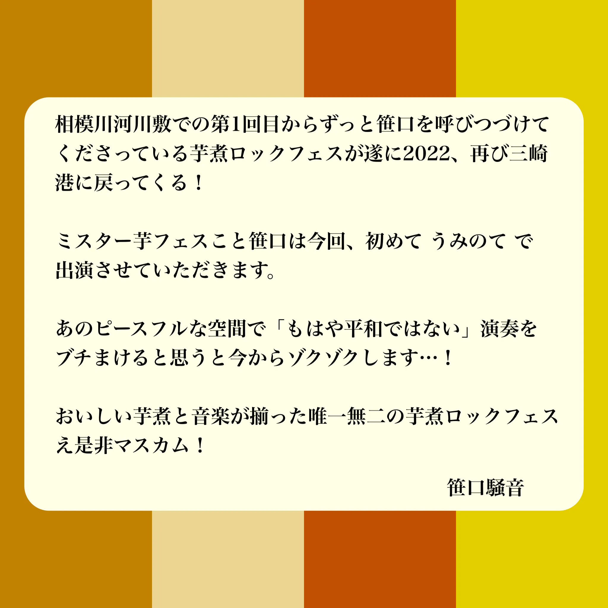 この度、コロナ禍を乗り越え"芋煮ロックフェス"が復活します!