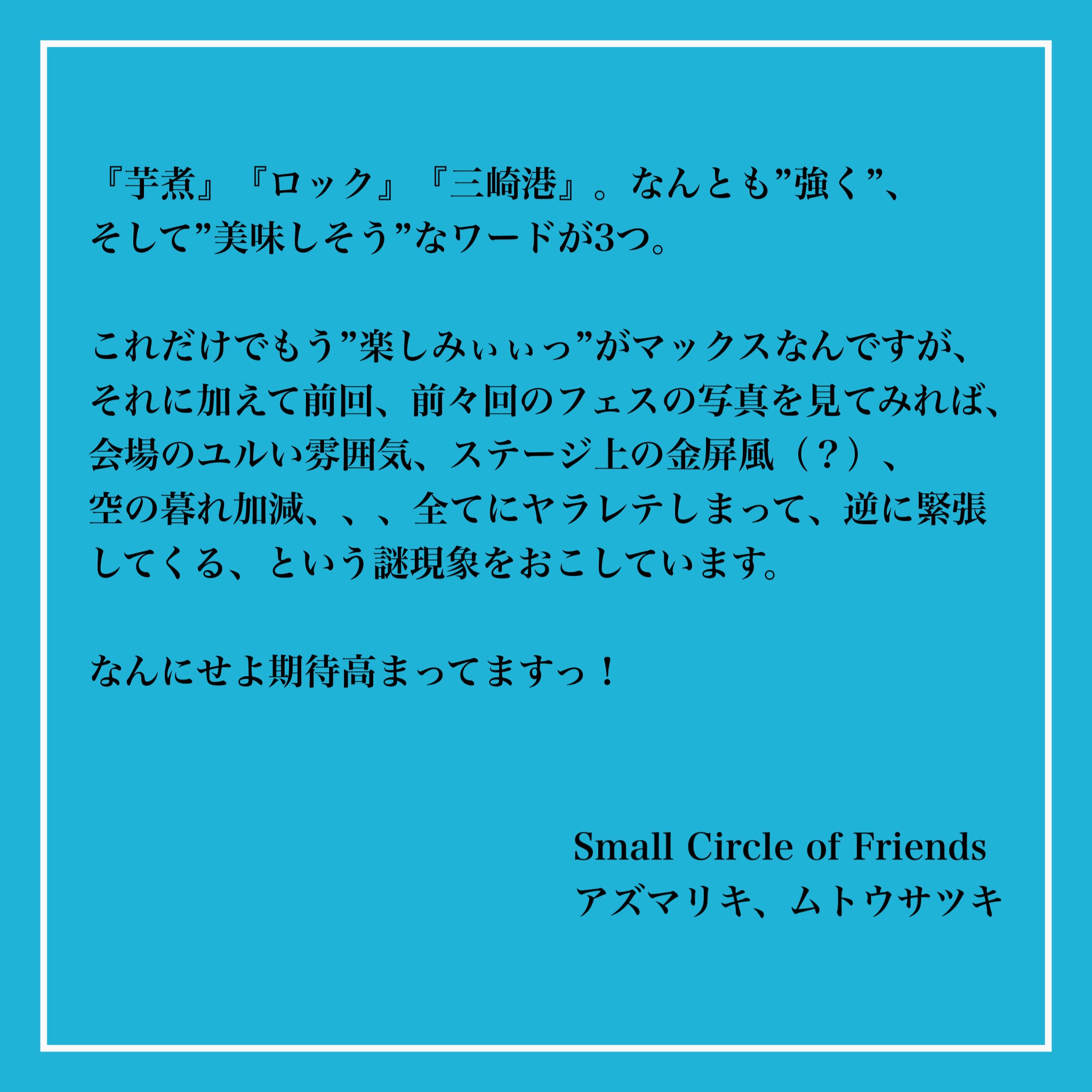 『 Small Circle of Friends 』のお二人から素敵なメッセージが届きました!