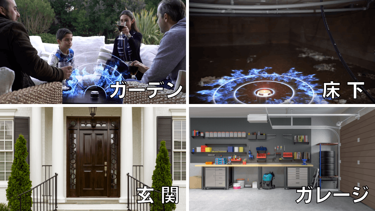 →電池を使用することで誰でも簡単に使用できます。開封後10秒あればセッティング完了です。
