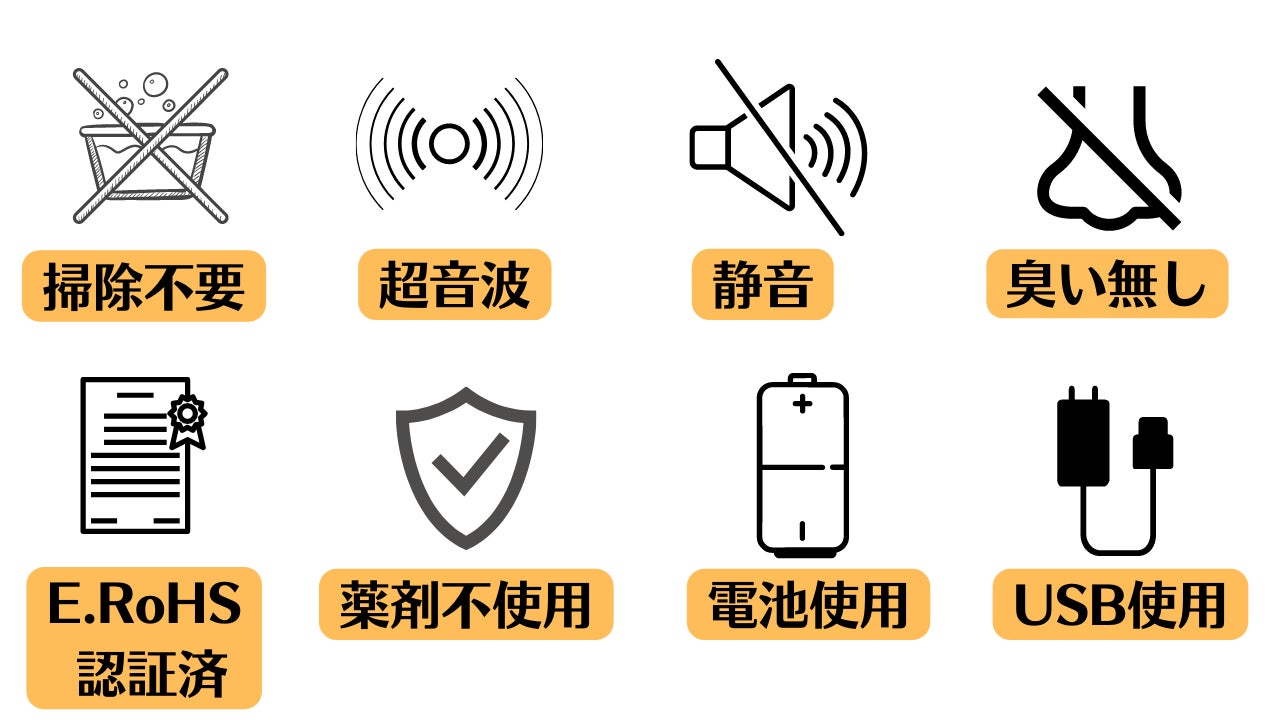 ② 薬剤不使用・無臭です!超音波は360度届くので、子どもの触れない高いところでもOKです。