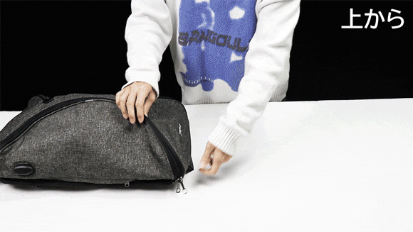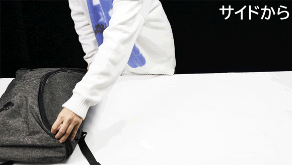 リュックの一番下に入っているものに対して、手をリュックの奥に入れず、底から開けて簡単に取り出すことが便利。