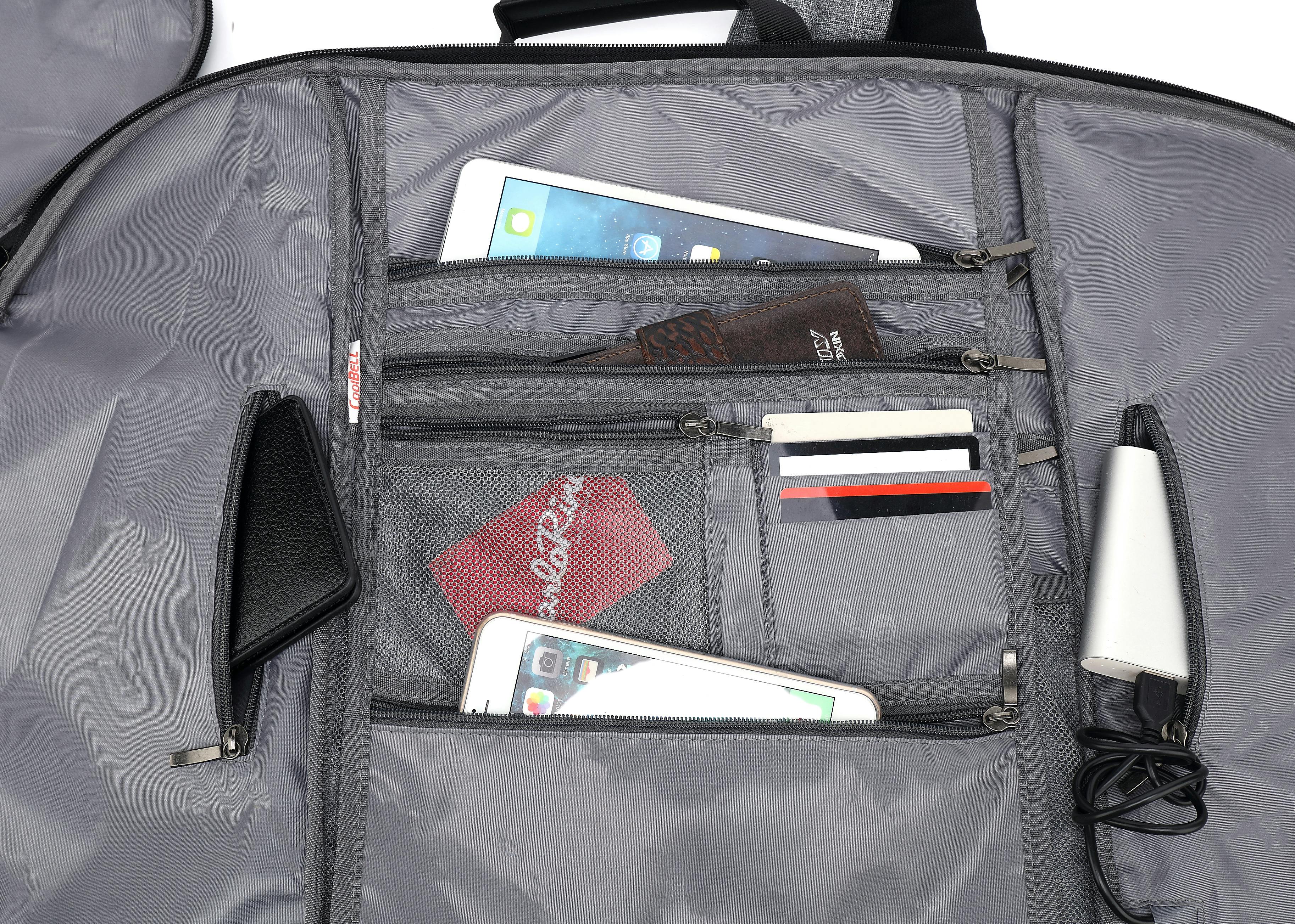 さらに、内側に14個の多機能ポケットが付き、ものの分類収納により、スペースを効率的に利用。通勤、通学、旅行に必要なペンやノートや手帳などはきちんと収納でき、中も一目瞭然。