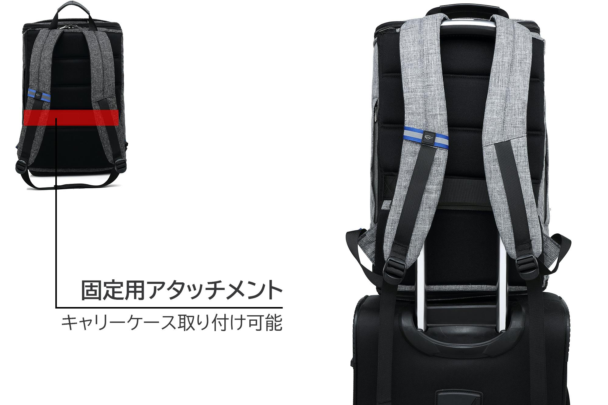 スーツケースのハンドルに取り付ければ、ハンズフリーでの持ち運びが可能です。