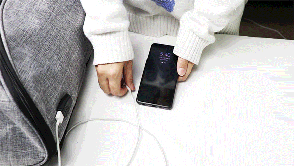 混雑している電車で、リュックをサイドから開けてモバイルバッテリーなどを取り出すのが便利。