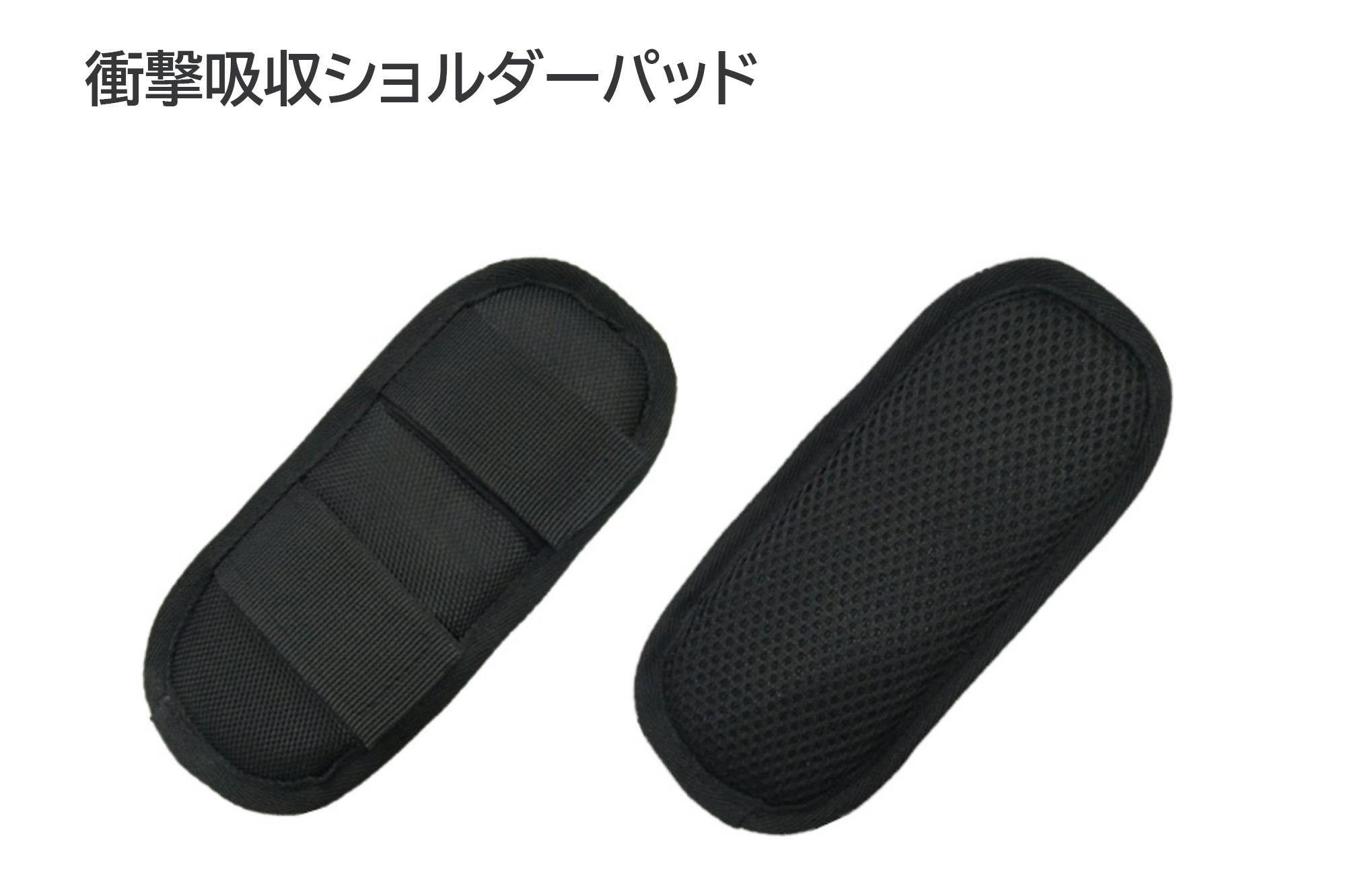 パソコンなどの重いものを長時間背負うときの肩の疲れを解消するために、圧力吸収・分散に優れたショルダーパッドも用意しました。