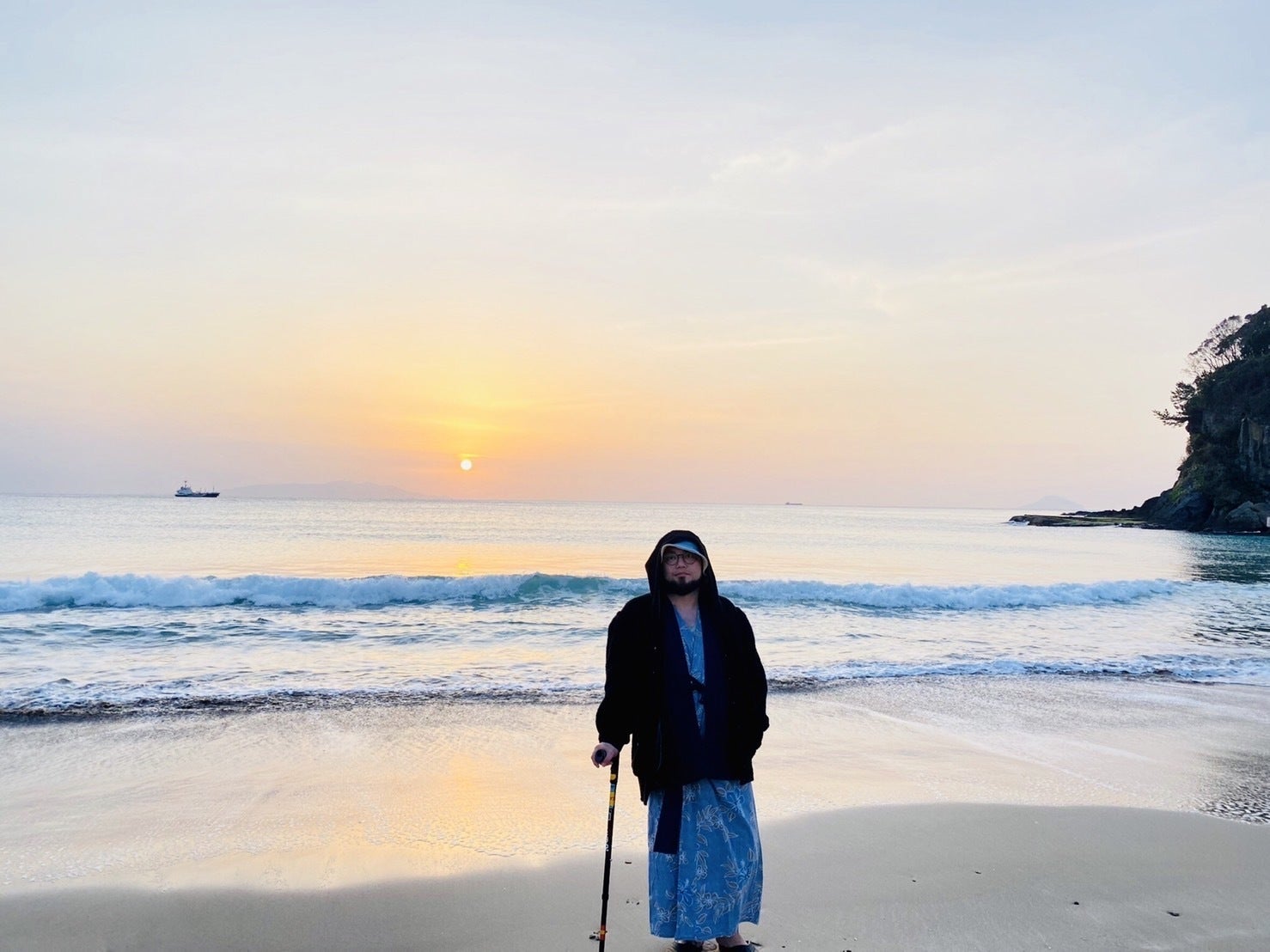さすがにギターを弾くことはままならず、歌に専念することになりました。杖をついているのはその為です。