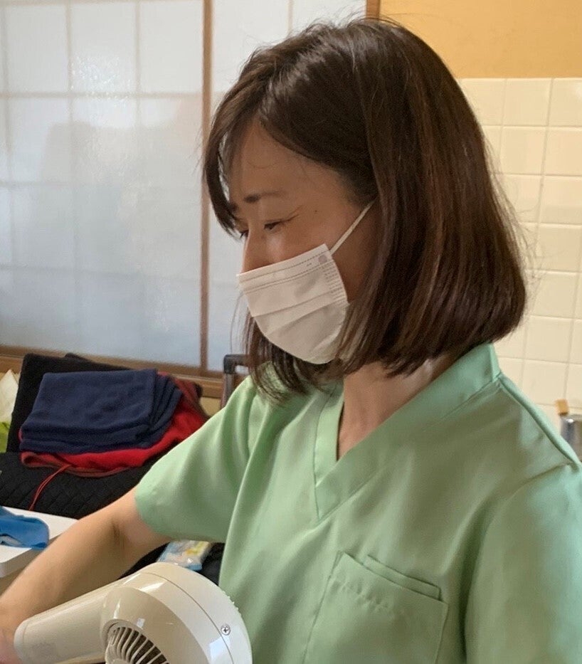 その後、自分の手で祖父母を笑顔にしたいと美容師を目ざし、美容師資格を取得しました。のちに自分が大きな病気をしたことで、25年前に祖父母にしていた、にわか入浴介護の経験を思い出し、もっと深く介護を学びたいと考えるようになりました。そして訪問介護サービスを初め、特別養護老人ホーム、病院勤務などで介護の経験を積み、国家資格である介護福祉士の資格を取得しました。