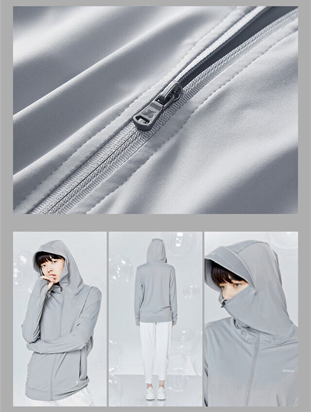 夏場だけではなく、これから春季節に向けて外出にもっと快適するため、多機能性ラッシュパーカーF306を開発し、こだわりのデザイんだけではなく、しっかりUVカットの機能性を活かせます。生地が肌に触れた時に肌の熱が布に移動し、ひんやりと感じています。ツバが付きフード構造、多機能性でいろいろな日焼け止めアイテムに置き換えることができます。夏場のちょっとしたお出かけなどにも重宝です。