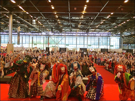 皆さん、こんにちは。 先日、フランスのパリで行われたJapan expoより、全ての公演を終えて無事に帰国致しました。 今回の渡仏は、皆々様のご支援のお陰で、我々吉原狐社中一同 とても貴重な経験を得ることができ、誠に感謝致しております。 誠にありがとうございました。 ご縁もあり、会期中は3種類のステージに出演することが叶いました。 感謝の気持ちも込めまして、簡単ではございますが、会場全体の様子や出演ステージの様子をご報告させていただきます。 Japan expo 2016 Japan expoとはフランスのパリで毎年行われている日本文化の祭典です。 広大な建屋の中に、たくさんのブースが立ち並び日本文化の紹介がされています。 武道や書道、将棋や碁などの日本文化体験はもちろんのこと、日本食の屋台や日本の漫画やアニメ、ゲームなども紹介されており、会場内は容易に通り抜けられないほどたくさんのお客様が来場されておりました。 そんな会場内において日本の伝統芸能を紹介するステージがあり、我々吉原狐社中も晴れて出演して参りました。 小さなステージから有名アーティストも立ったような大きなステージまで多種多様な舞台の様子をご報告致します。 ▶︎WABISABIステージ 舞台の周りでは日本美術・工芸・地域地産品等の展示販売やワークショップなど日本文化に触れ合える展示が盛りだくさんでした。 舞台はお客様との距離が近く、舞台から降りて楽器を鳴らしながら練り歩くのに最適な舞台でした。 じっと見てくださるお客様はもちろん、笑いどころでしっかりと笑ってくださるお客様の顔も拝見することができたアットホームな舞台でした。 ▶︎SAKURAステージ 伝統芸能部門のメインステージ。書道、演劇、舞踊、音楽関係のパフォーマーらが出演。 舞台の背後に設置された大型スクリーンにはカメラが捉えたライブ映像が流れ、音響整備も整っており、自身で演奏したお囃子の音色が、広い会場内に大きく響き渡りました。 また演舞後、お客様の拍手が大きく、会場内がとても盛り上がって公演を終えられたことが本当に嬉しかったです。 ▶︎YUZUステージ 映画やアニメのプレミアム試写会、高名なゲストの講演会などを開催するステージ。あのきゃりーぱみゅぱみゅさんも乗ったステージです。 渡仏一週間前に、急遽この舞台でもパフォーマンスをする事になりメンバー一同驚きを感じながら大きな舞台でパフォーマンスが出来る事を喜びました。 客席の動員人数は4000人。全席が埋まるはずもないと思っておりましたが始まってみると、こちらの予想に反して、たくさんのお客様がいらっしゃり、大変驚きました。 あたりは照明が落とされた暗い闇の中、舞台のみが照らし出され、そこに浮かび上がった吉原狐の舞はお囃子方として後ろから見ても美しいものでした。 演目中は、お客様も真剣な眼差しで見ていただいておりましたが、演目が終わると割れんばかりの拍手にて見送ってくださいました。 (写真はSAKURAステージの様子) Japan expoでは、我々 吉原狐社中の出来る限りの事を全て出し切って参りました!心残りは何一つございません! そして、他の出演者の方々のレベルの高さを感じ、新たな課題や目標に気付くことができました! これからもっとお客様にも喜んでもらえるパフォーマンスができるよう次の目標を目指して、より精進していきたいと思います。 吉原狐社中のJapan expo出演は吉原狐社中一同の夢であり、私個人の夢でもありました。 私は数年前フランスのパリに留学をしておりました。 異国で必死に勉学に励むかたわら、私は日本好きのフランス人が想像以上に多いことを知り、その方たちから私が知らない様々な日本の事を聞かされました。 私は日本人でありながら日本の事を何も知らなかったのです。 それから私は母国日本の事を調べ始めました。そしてその時出会ったのが「吉原狐」だったのです。 「こんな珍しく、且つ日本らしい狐舞ひというパフォーマンスは世界中どこを探してもない!是非ともJapan expoの舞台に立ってもらいたい」 その想いが抑えきれず、「フランス公演をしませんか」と吉原狐社中に声をかけたのが数年前です。 それ以来、私の心の隅にはいつもJapan expo出演の夢があったのですが、その夢が今年の夏についに叶ったのです。 そのため、今回のJapan expoへの参加は私にとって、感慨深い遠征となりました。このような機会にご支援いただいた皆様には心から感謝致しております。 吉原狐社中は今後も、より一層精進してまいります。 この度は本当にありがとうございました! (文章:弓姫)
