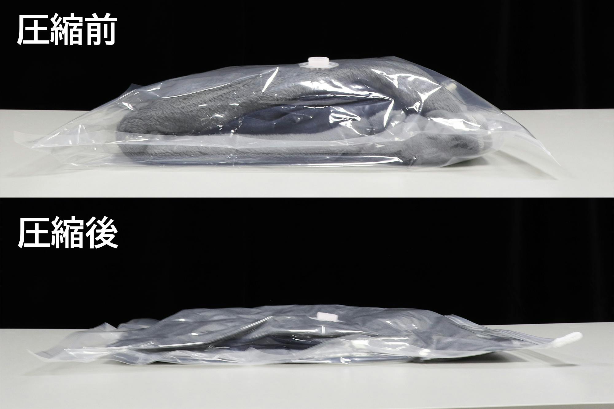 あっという間に圧縮袋の空気抜きが完了し、スペースを節約でき、コンパクトに収納可能。