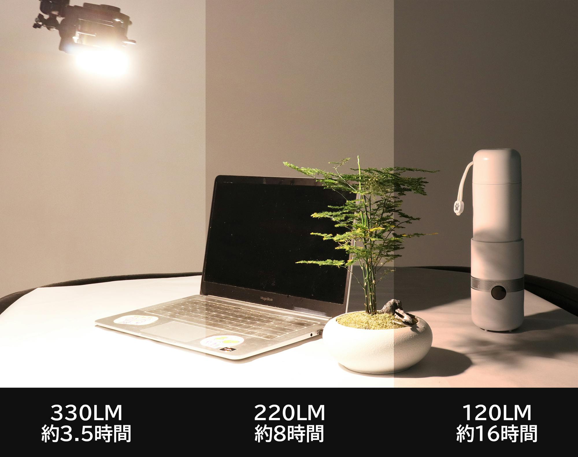 330LMは部屋中をはっきり照らすほど眩しい光で、明るさが必要な細かい作業に向いています。