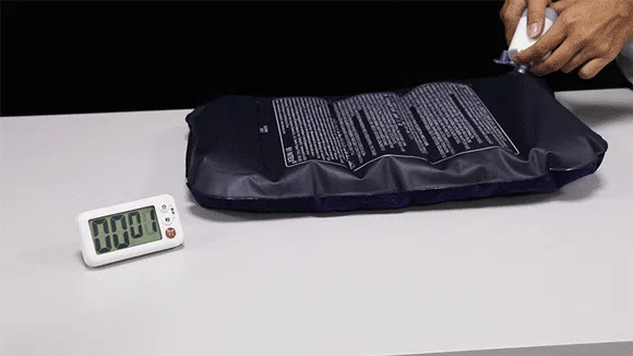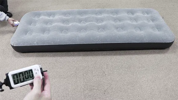 僅か3分半でエアーベッドへの空気充填が完了