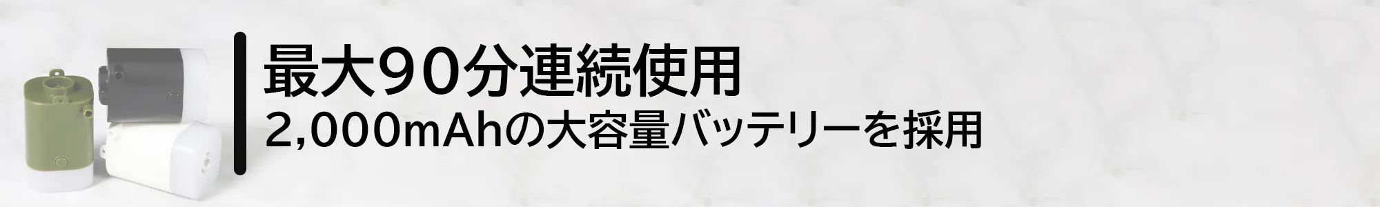 ■2,000mAhの大容量バッテリーを採用・最大連続使用90分