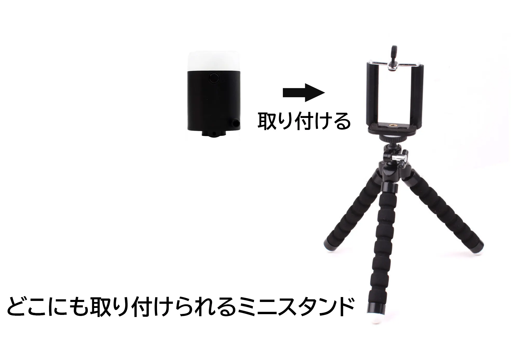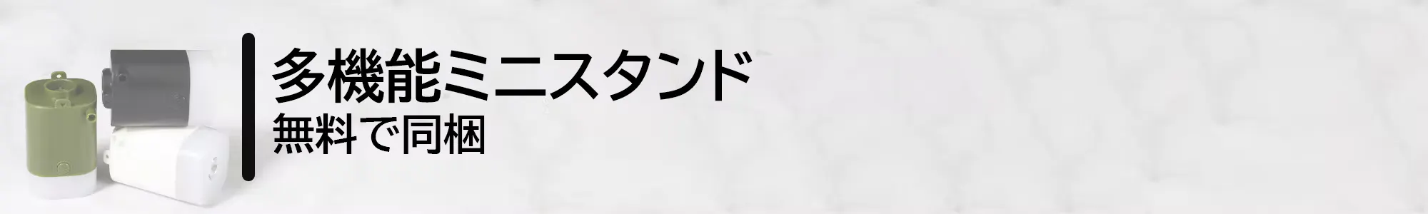 また、卓上、机の足、木の枝などに簡単に取り付けられるミニスタンドを同梱します。