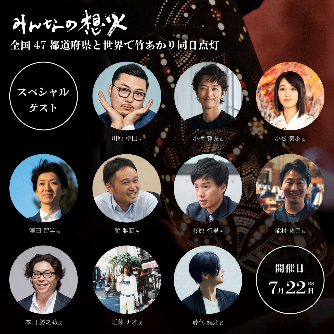 僕らはその仲間を「サムライ」と呼び、47都道府県から募集をし、7/23に全国のサムライたちと竹あかりを灯しました。