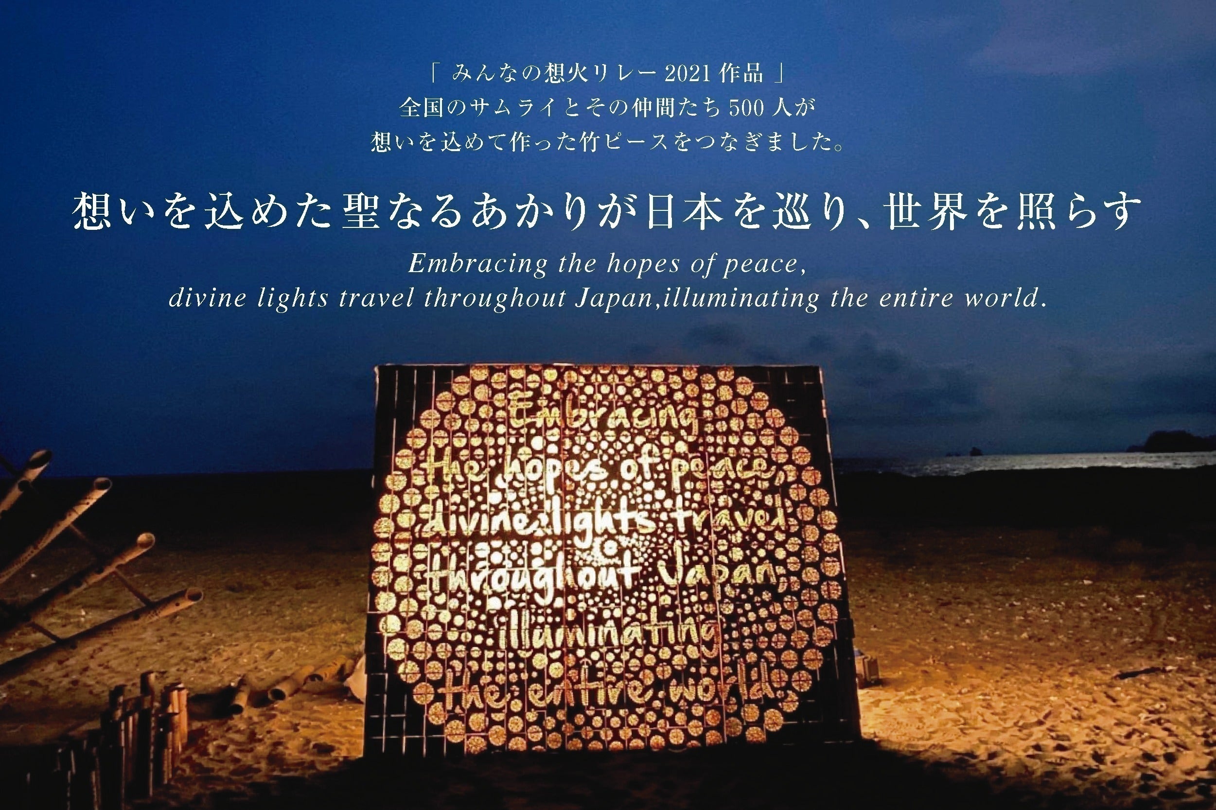 2020年に開始した「みんなの想火」プロジェクトは、3年目の今年を集大成とし、『世界竹の日』9月18日に全国47都道府県+世界で竹あかりを灯します。「世界平和の日」 PEACE WEEKでもあるこの日に世界への希望のあかりとなるように祈りを込めながら。