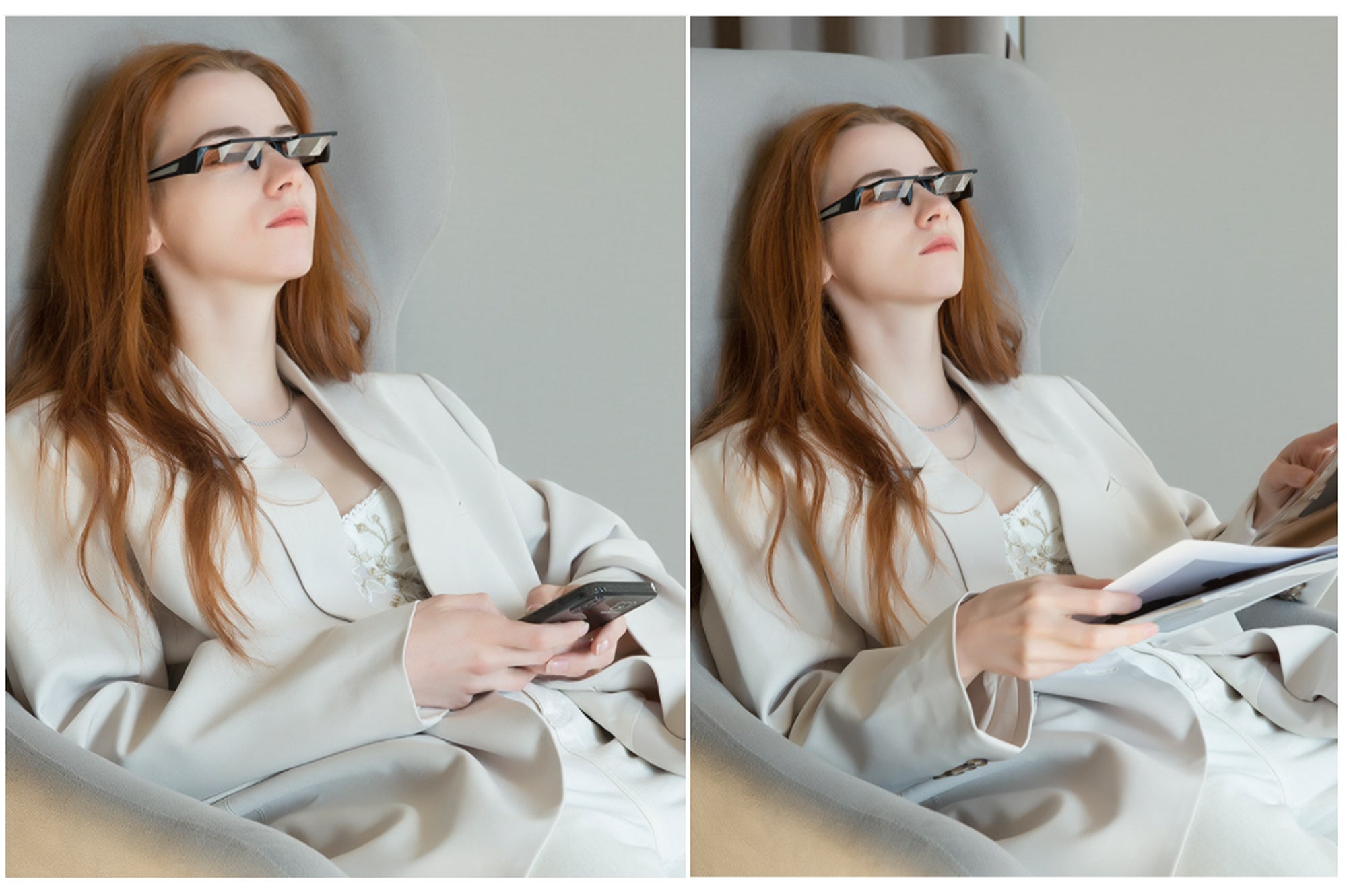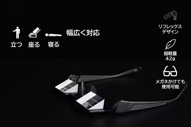 「Gulais」をかけると、頭を下げずに読書やスマホを使うことができるようになり、そのほか、元々メガネをかけている人たちでも使えるようになります。