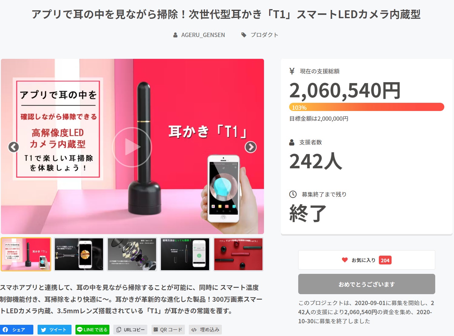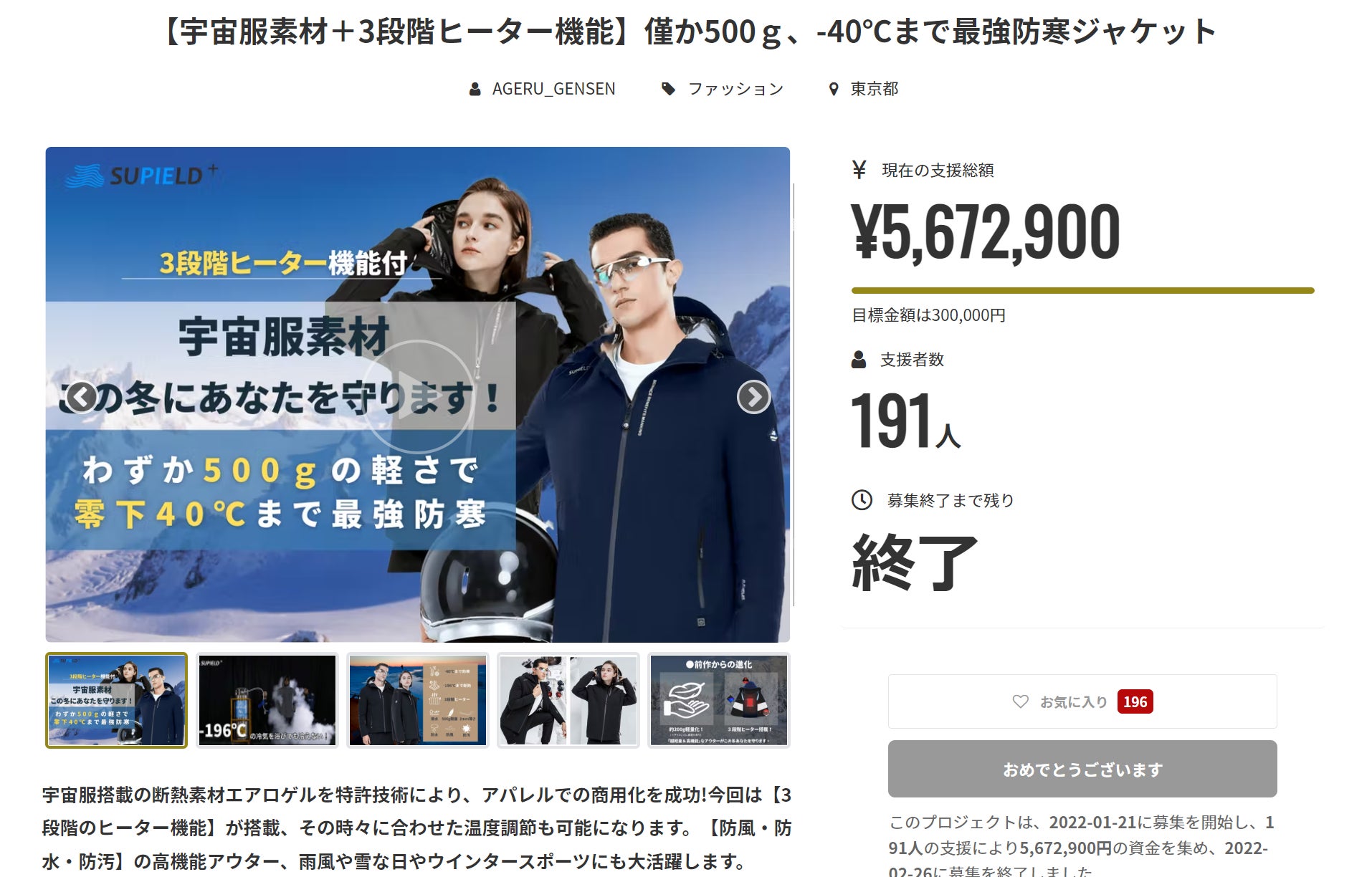 【御礼】大好評につき、プロジェクト294%を達成したしました!