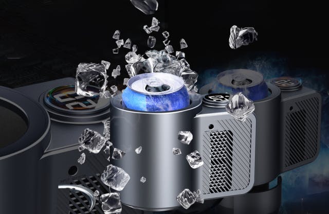 急速冷却ホルダー「HYPER COOLER 2」は、車載時運転中にも一目で温度が読み