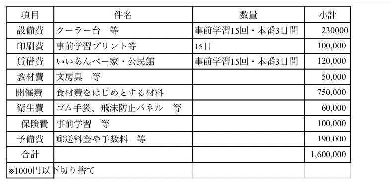 しかし、今年の予算を算出したところ、クーラー等の設備台を考慮すると、開催費として約160万円は必要です。この金額は自分たちの力だけでは実現できる金額ではありません。