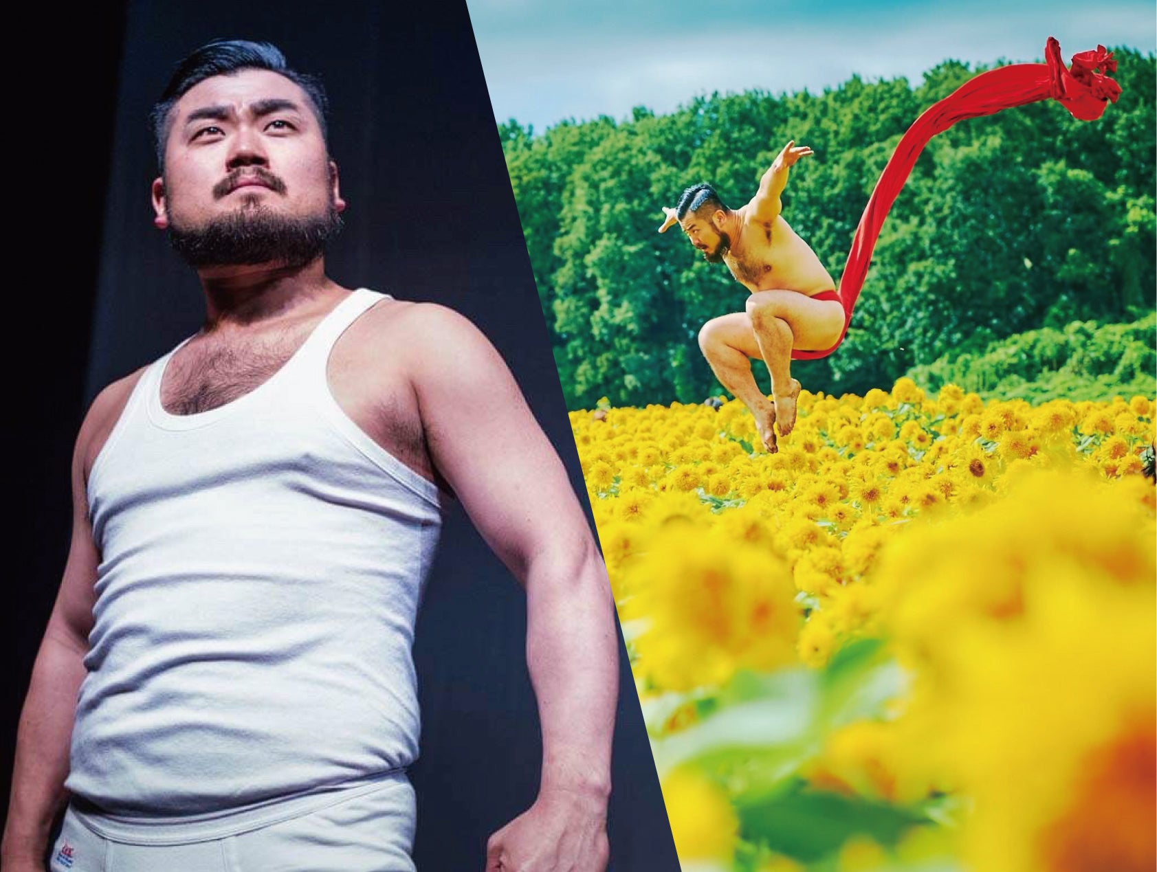 大自然の中で、長すぎる赤い褌をたなびかせ舞う写真活動「ふんどし日和」を開始。Twitterで3.5万リツイートを記録し話題になり、TV、CM、雑誌、等々メディアへの出演も精力的に活動している。
