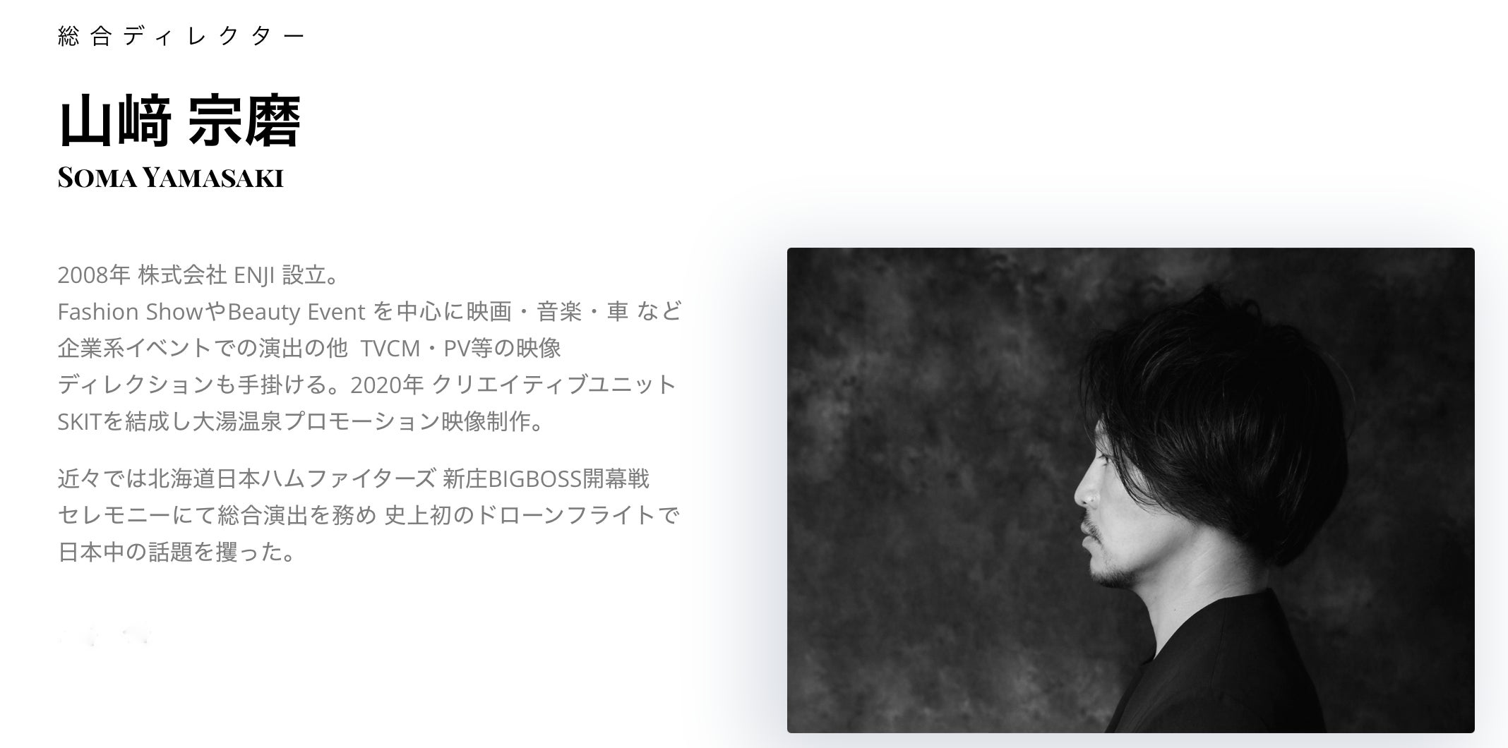ジョージ・ルーカス ロバート・ゼメキスなどの著名な監督を輩出した 全米トップの映画学校南カリフォルニア大学(USC)映画製作学科卒業。 監督した短編映画「ロストサムライ (The Lost Samurai)」は ハッチ・フィルムフェスティバルで日本人として初めてグランプリを受賞。 「ウェイキング・アップ (Waking Up)」は、 アジアン・オン・フィルムフェスティバルで 作品賞、監督賞、俳優賞を受賞。他多数の国際映画祭で上映される。