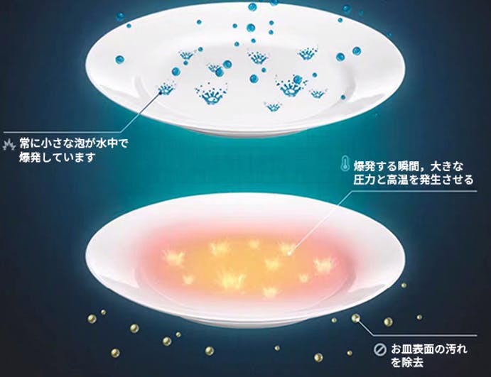しかも、超音波による振動や気泡には洗剤の化学反応を促進する作用があるため、洗剤の威力を高めることもできるのです。