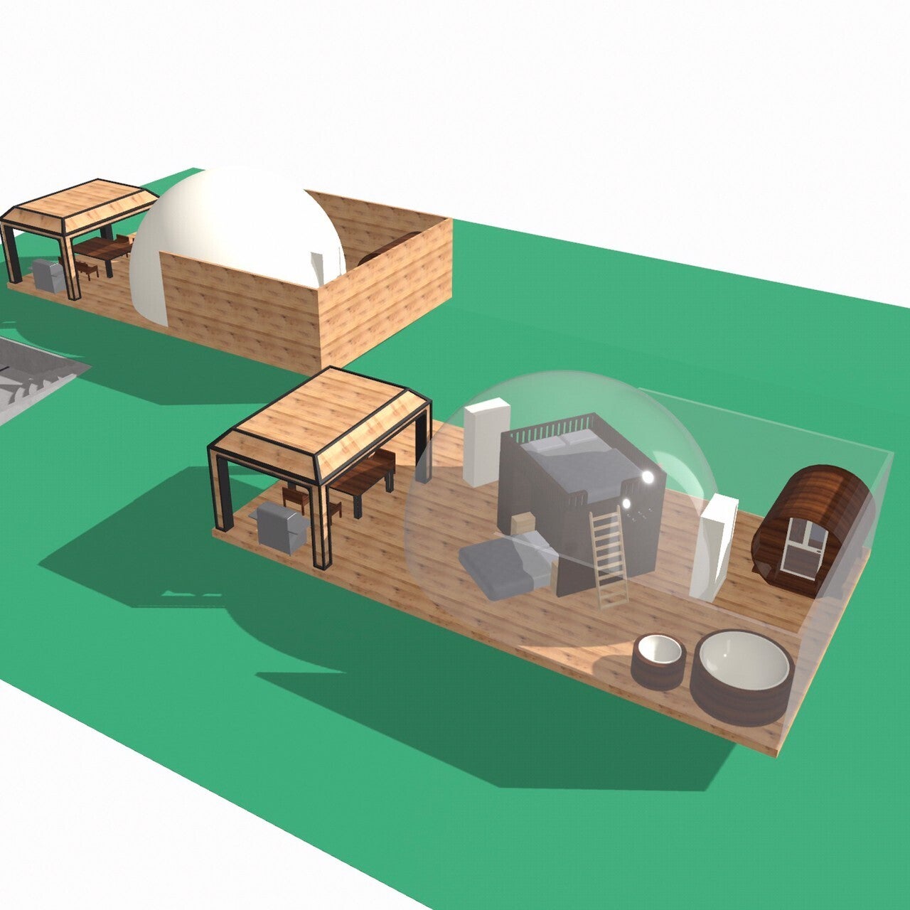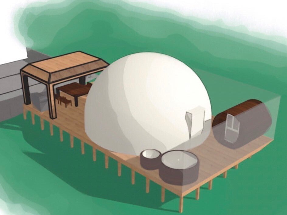 今回私達の計画しているグランピング施設は、約1000㎡の敷地にドームテント2棟のみの贅沢なプライベート空間をご提供予定です。