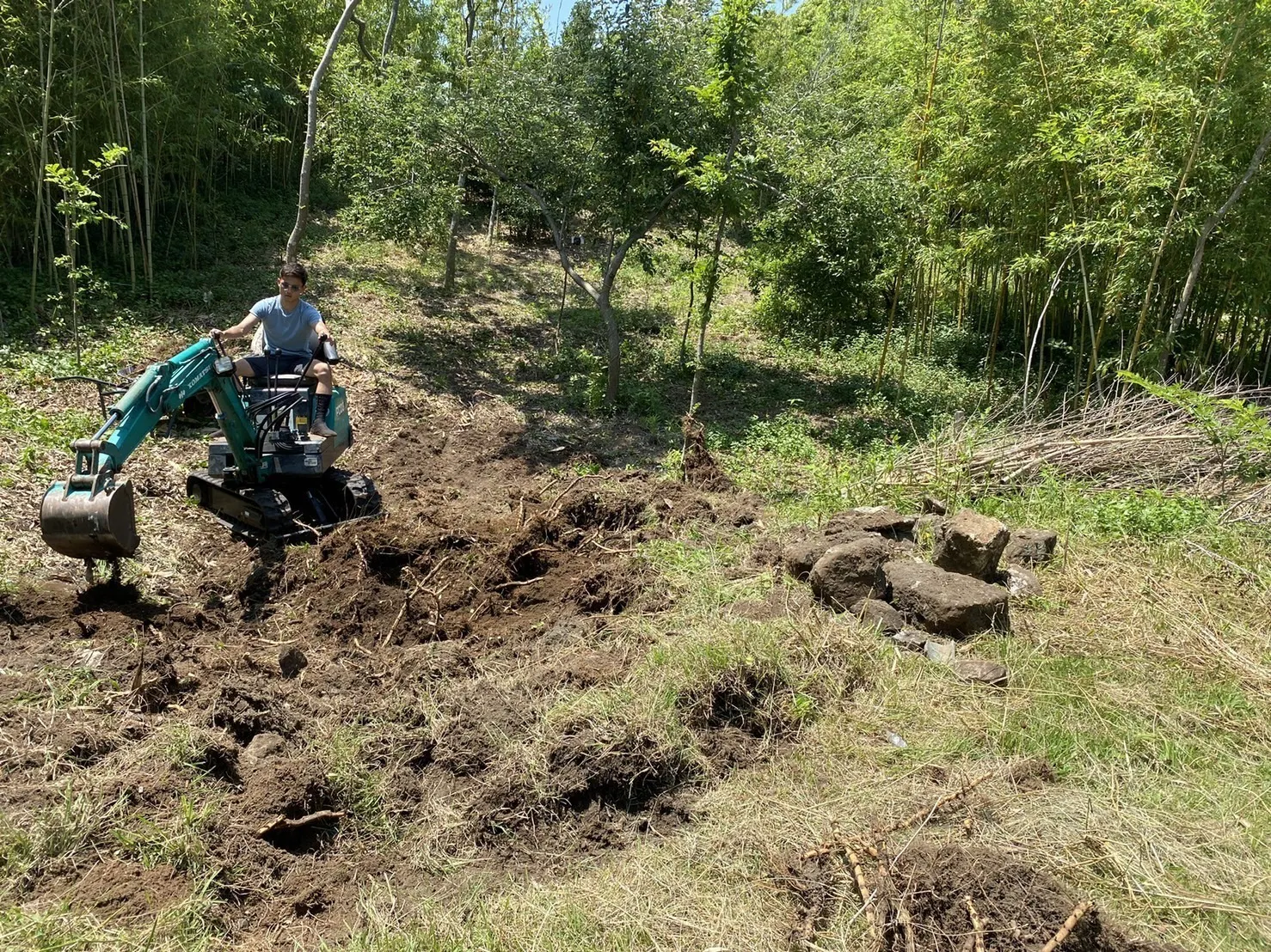 手作業で竹を切ったり、ユンボで掘り返したり、できる日は朝から晩まで作業しています。