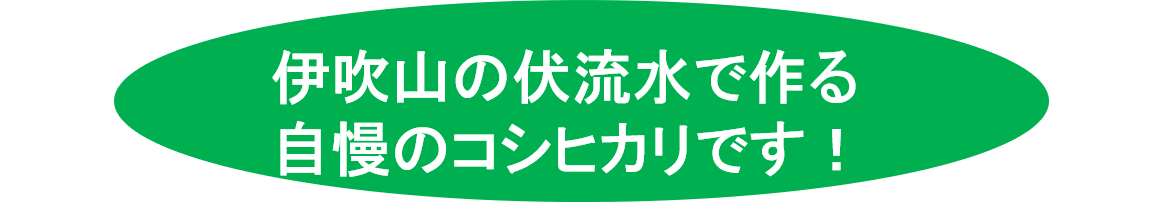 私たちの作るお米(コシヒカリ)は伊吹山のミネラル豊かな伏流水をくみ上げ、寒暖の差がある気候が美味しい自慢のお米に育ちます!