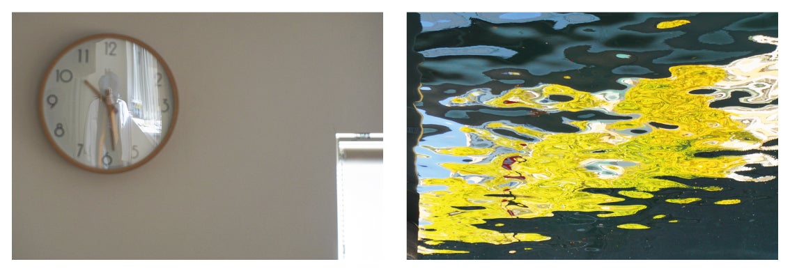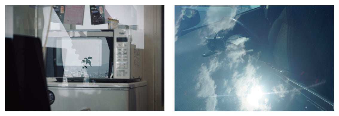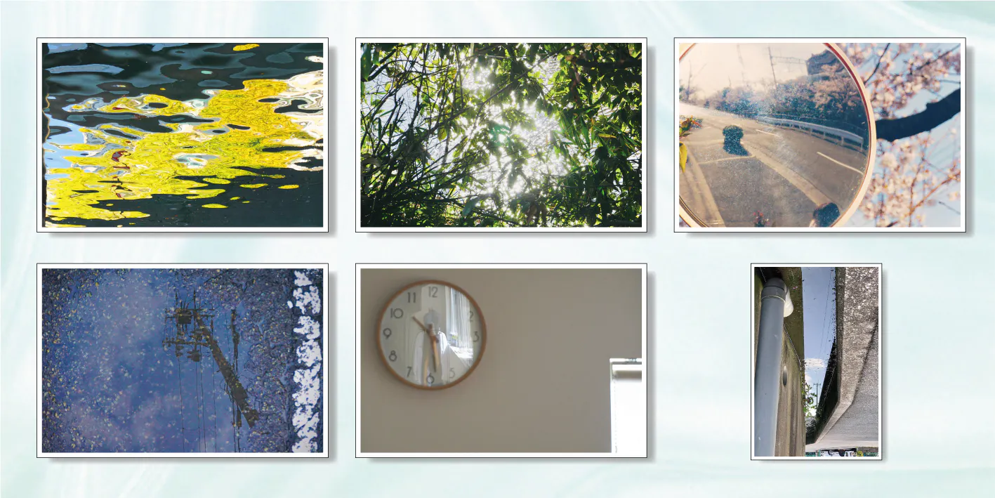 電子レンジの扉や車のフロントミラーに映る風景。
