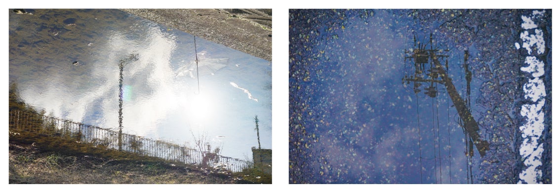 川や水たまりに映る風景。