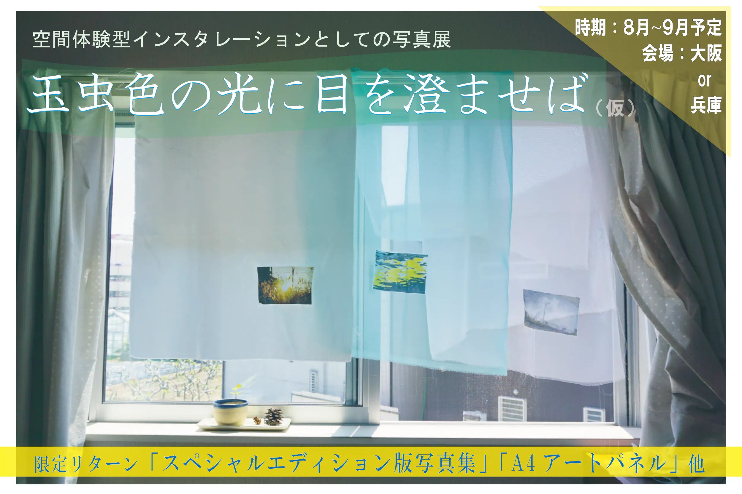 わたしは、「空間インスタレーション作品」としての写真展を開くことで、写真が美しいだけでなく、その会場も美しい風景となるような写真展の新しい姿が提案できればと思います。そのような写真展開催にあたって、ぜひ皆様にご支援いただければ幸いです。