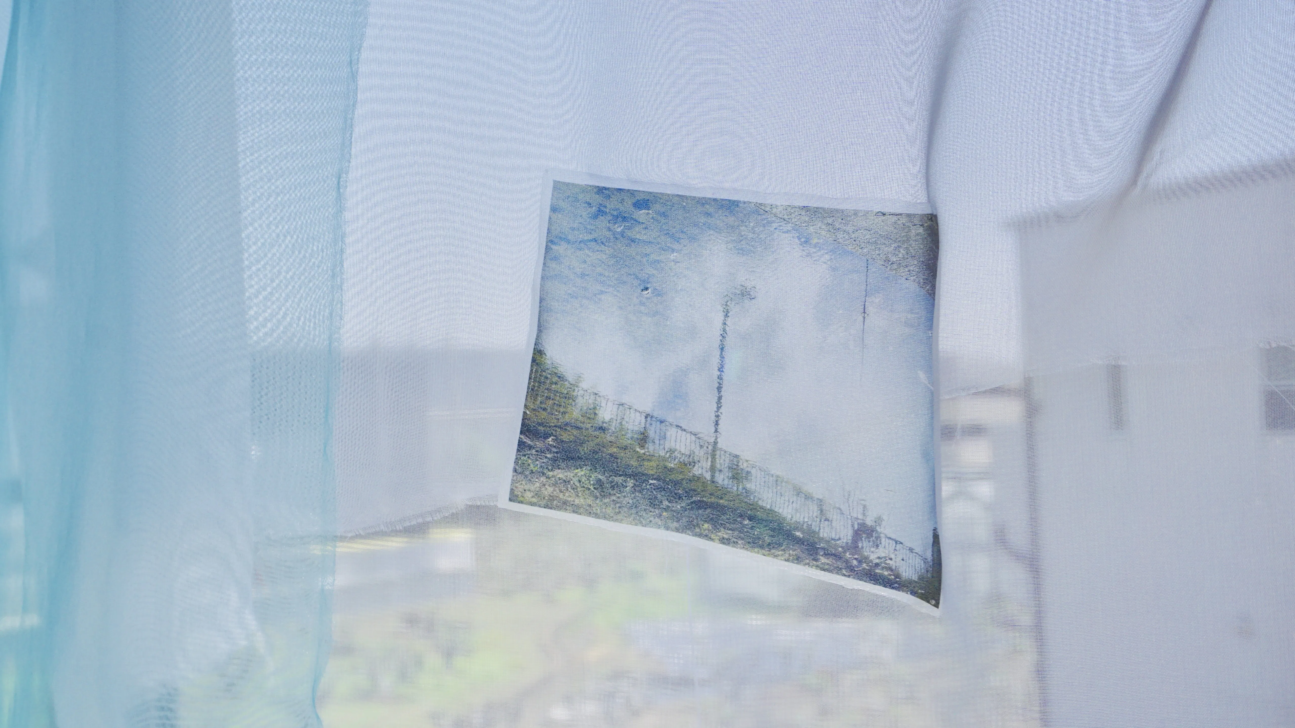 【空間演出の実験】布と共に写真も揺れ、風景に溶け込む。