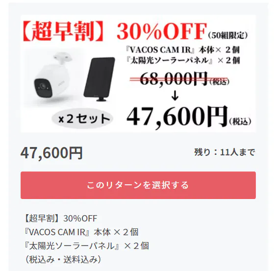 30%OFF【超早割】の2台セットは残り11個になりました!