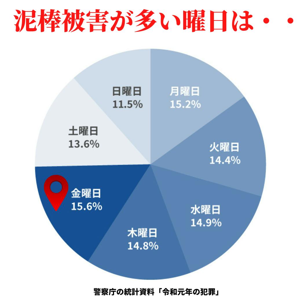 少し家を空けるので、泥棒被害の多い曜日を調べてみました。