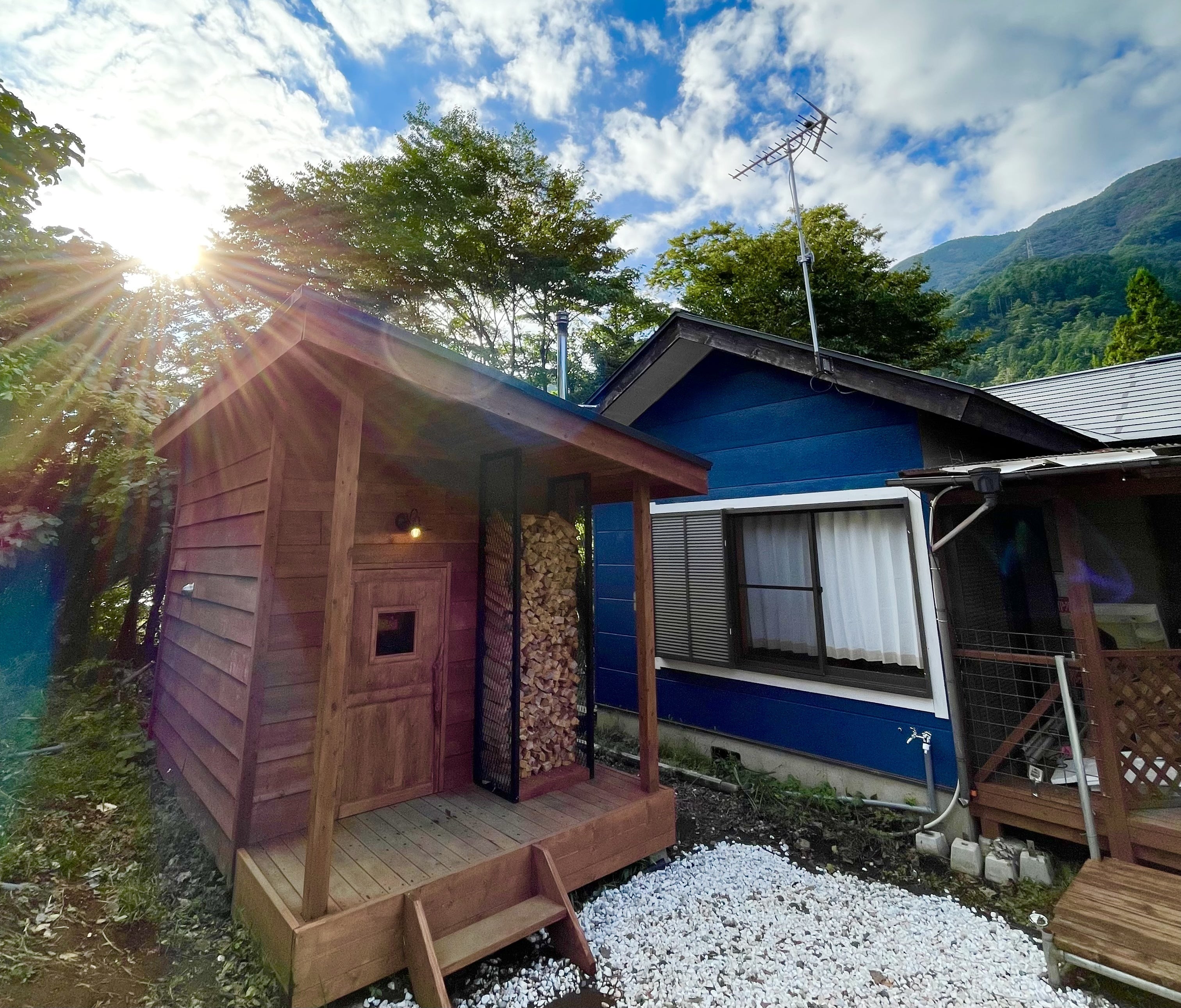 あえてチラーは設置せず自慢の道志川の水を楽しんでいただきます。冷たいのがお好みの方は、氷を入れて冷やすもよし!薪で温めて朝風呂するのも格別です。
