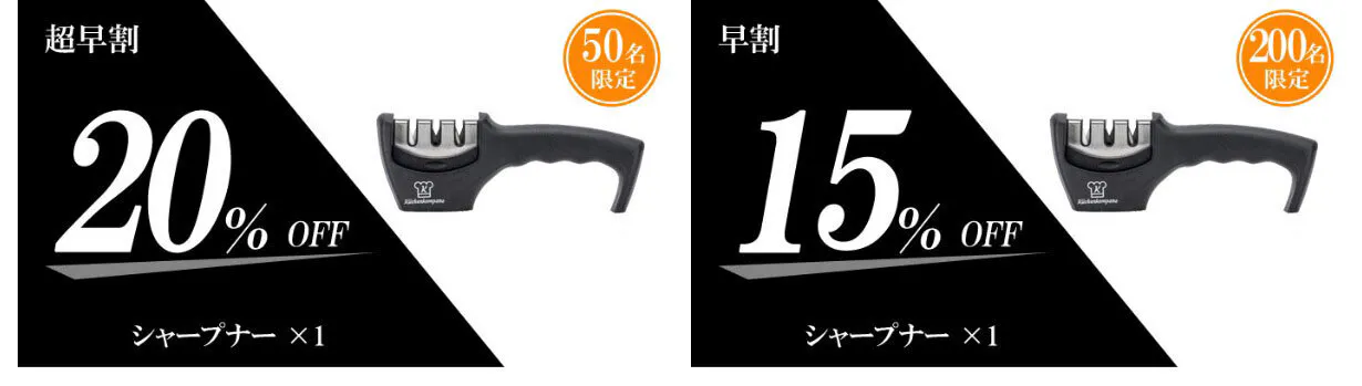 専用シャープナーをお使いいただくと技術や知識がなくとも簡単に元の切れ味に戻すことができます。