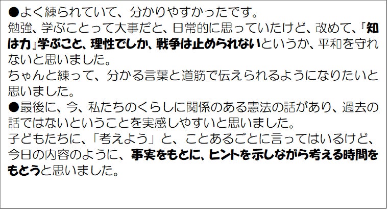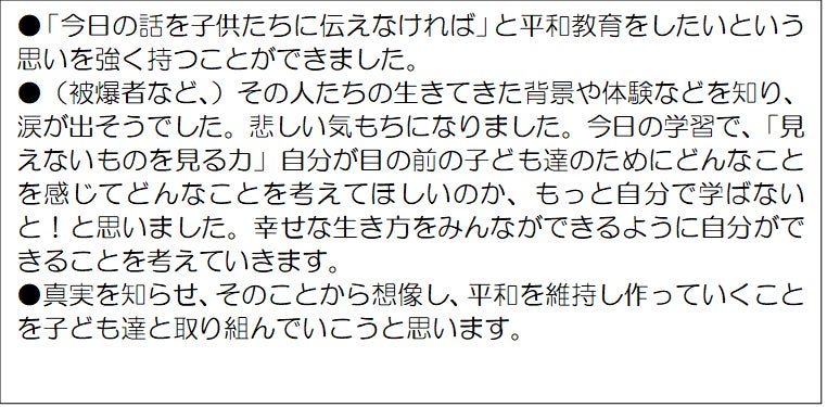 参加した先生方の感想平和をつなぐには、教育が大事!