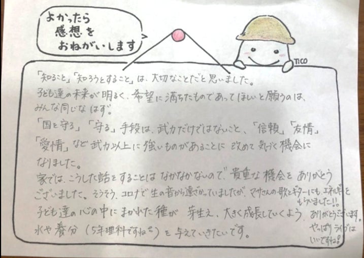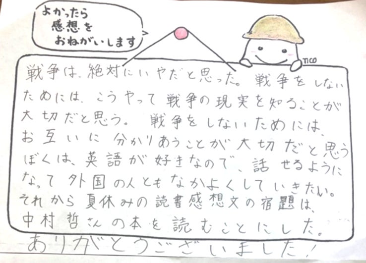 と学習会に参加してくれていた小学生が、感想に書いてくれていました。