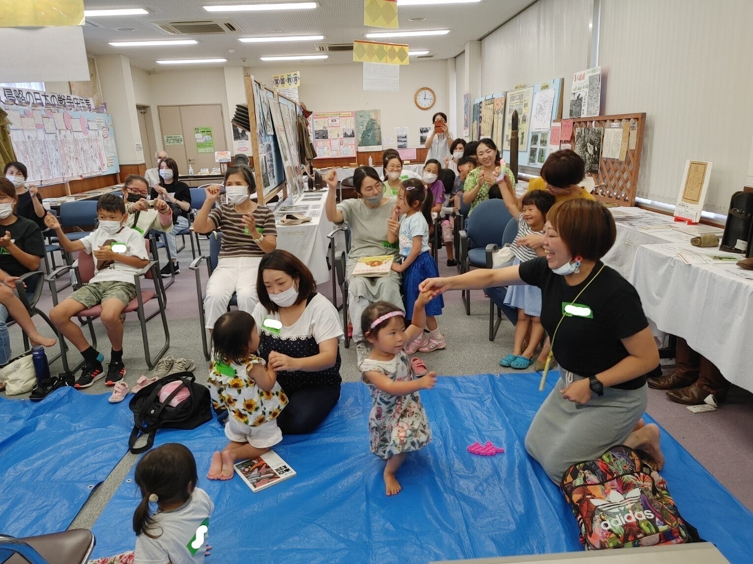まささんが歌う「ピースLOVE友だちになろう」に乗せて自由に表現する子ども達 子ども達が心で感じていることが伝わってきました。