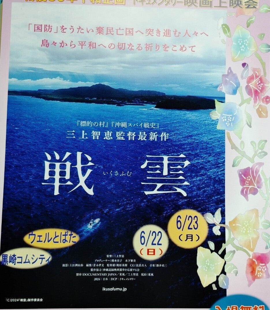 2025/05/21 18:26昨年9月。石垣島の現状を知りたくて、友人の誘いに乗った。『戦雲』の題名になる唄を謡った、山里節子さんにお会いすることができた。戦争中に、避難させられた場所で自分も含め、家族がマラリアにかかり、家族を亡くした。お兄さんは、予科練(海軍飛行予科練習生)として船で移動中に撃沈され、亡くなった。戦後、家計を助けるため、また、英語を話せるようになるために、アメリカによる石垣島の調査活動を手伝った。その調査が、その後の飛行場建設などに利用されたことを知り、愕然とする。「私が平和活動をするのは、贖罪なのよ。」とおっしゃられた。おばあは、平和を守るために、今、生きている。石垣島には戦後、戦争に関係する施設はなかった。そんな石垣島に、2年前(2023年)、「石垣駐屯地」が開設した。2018年。自衛隊の駐屯地建設に対して、住民たち(若者を中心にして)は、住民投票を求めた。住民の意思を示し、お互いを理解し合うために、住民投票を求めた。住民投票を求めるために、住民の署名を集めた。地方自治法で住民投票条例の請求に必要な署名は有権者の50分の1。その数をはるかに上回る、有権者の4割近い署名を一ヶ月で集めた。石垣市は請求に基づいて市議会に条例案を提案したが、議会はこれを否決した。・・・この、民主主義を踏みにじるできごとが2018年から2021年に起きていたのだ。詳しくはコチラ➡沖縄テレビ放送知らなかった。・・・全く知らなかった。国を守るために、一部の犠牲に目をつぶる。見ない振りをする?「知らなかった。」で、済ませてはいけない。許してはいけない事なのだ。なぜなら、私たち日本に生きる人みんなの問題だから。これを許すということは、いつか私たちも、同じ思いをすることになるということだから。国をつくるのは、国民である。未来のために、ちゃんと知って、考え、行動しなければ、戦後できたその仕組みは、奪われる。戦後80年という、戦争を思い出すチャンスを逃したら、もう、戻ることはできない。未来に禍根を残すことになる。そんな気がしてならない・・・関心をもとう。知り、考え、行動しよう。申込みはコチラ➡参加申込 もっと見る