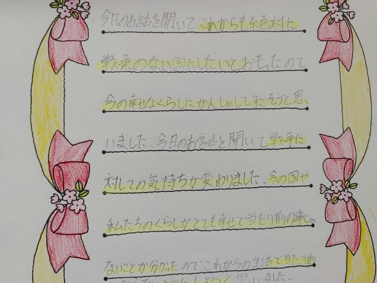 伝承者として、一方的に話すのでなく、問いを投げかけ、考えてもらう伝承講話ということも考えさせられました。ありがとうございました。~広島で伝承活動をされている方より~