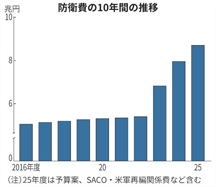 日経新聞「過去10年間の防衛費の推移」より