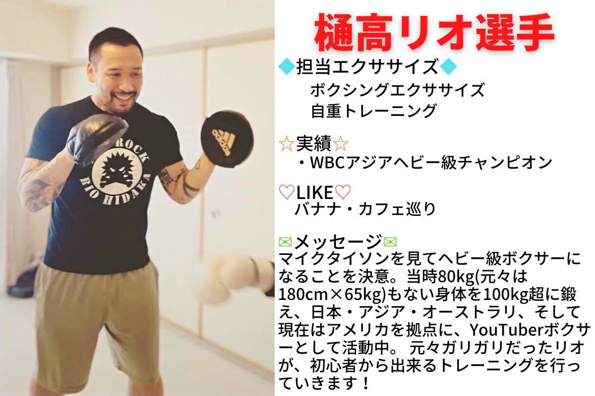 見るだけでも貴重なのにエクササイズのアドバイスをもらえるとレッスンが楽しみになりますよね。レッスンの最後にトークタイムを設けているので、その日のエクササイズの振り返りや健康の相談、プライベートな質問も!?といった新たな発見や楽しみがある場になります。アスリートと会える楽しみが続けるモチベーションにつながり、継続すれば健康になる、とても良いサイクルや習慣ができます。エクササイズをきっかけに格闘技ファンへの転身もありですね♪