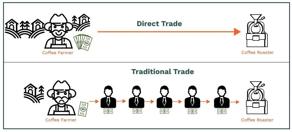 ダイレクトトレードとは簡単にいうと、直接生産者さん達の元を訪れ、直接交渉し、購入した代金を直接お渡しするという取引の形態のことをいいます。膝と膝を突き合わせて話し合えるので、よりフェアなトレードを行うことが可能で、生産者さんたちへ多くを還元できる仕組みです。