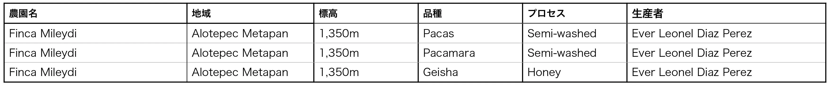 CAMPFIREでの目標金額である300万円は私達の予算に追加してミレイディ農園から以下のロットを引き取るための金額に充てさせていただきます。