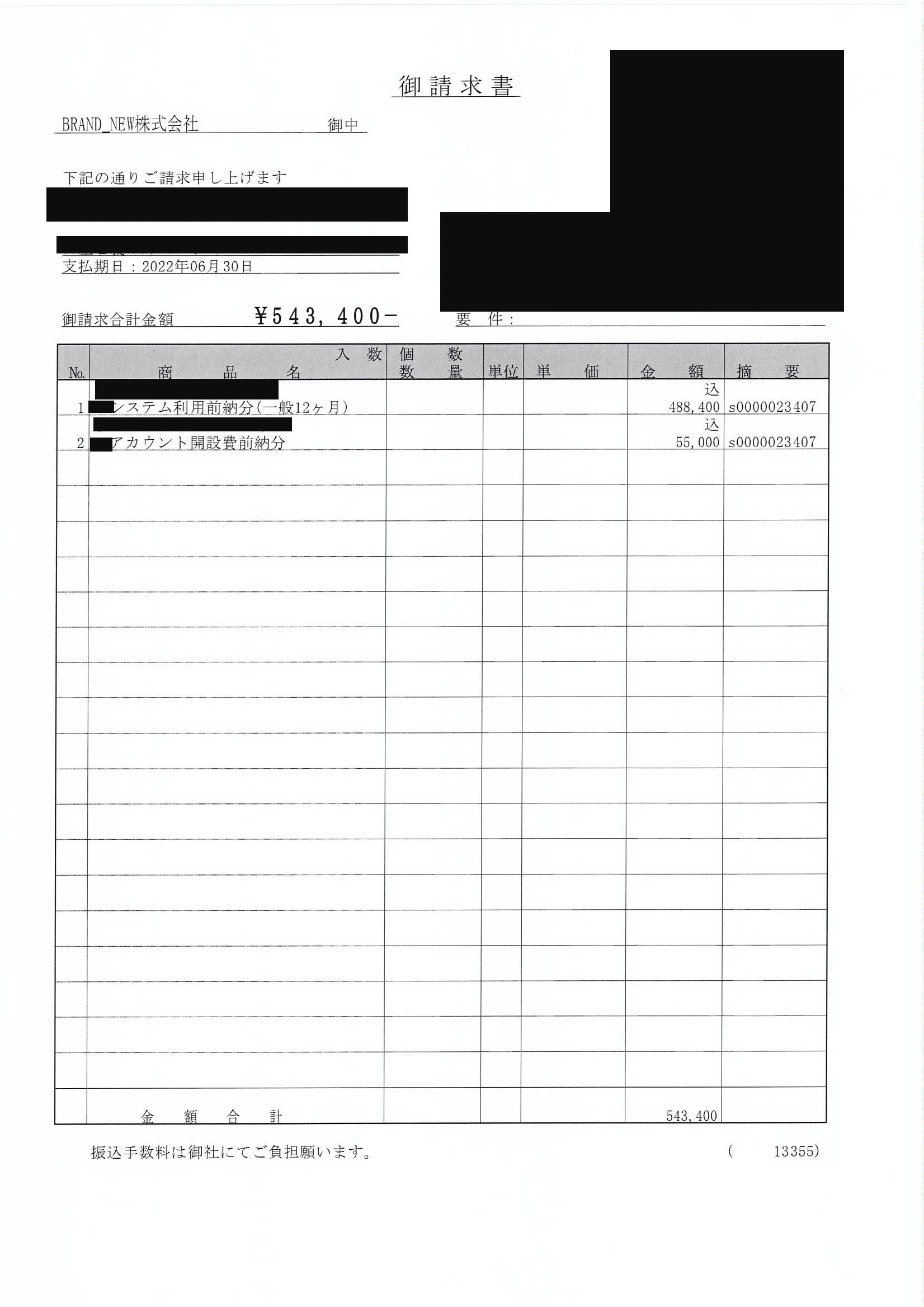 ※特定の情報漏洩する部分は黒塗りとさせて頂きます。